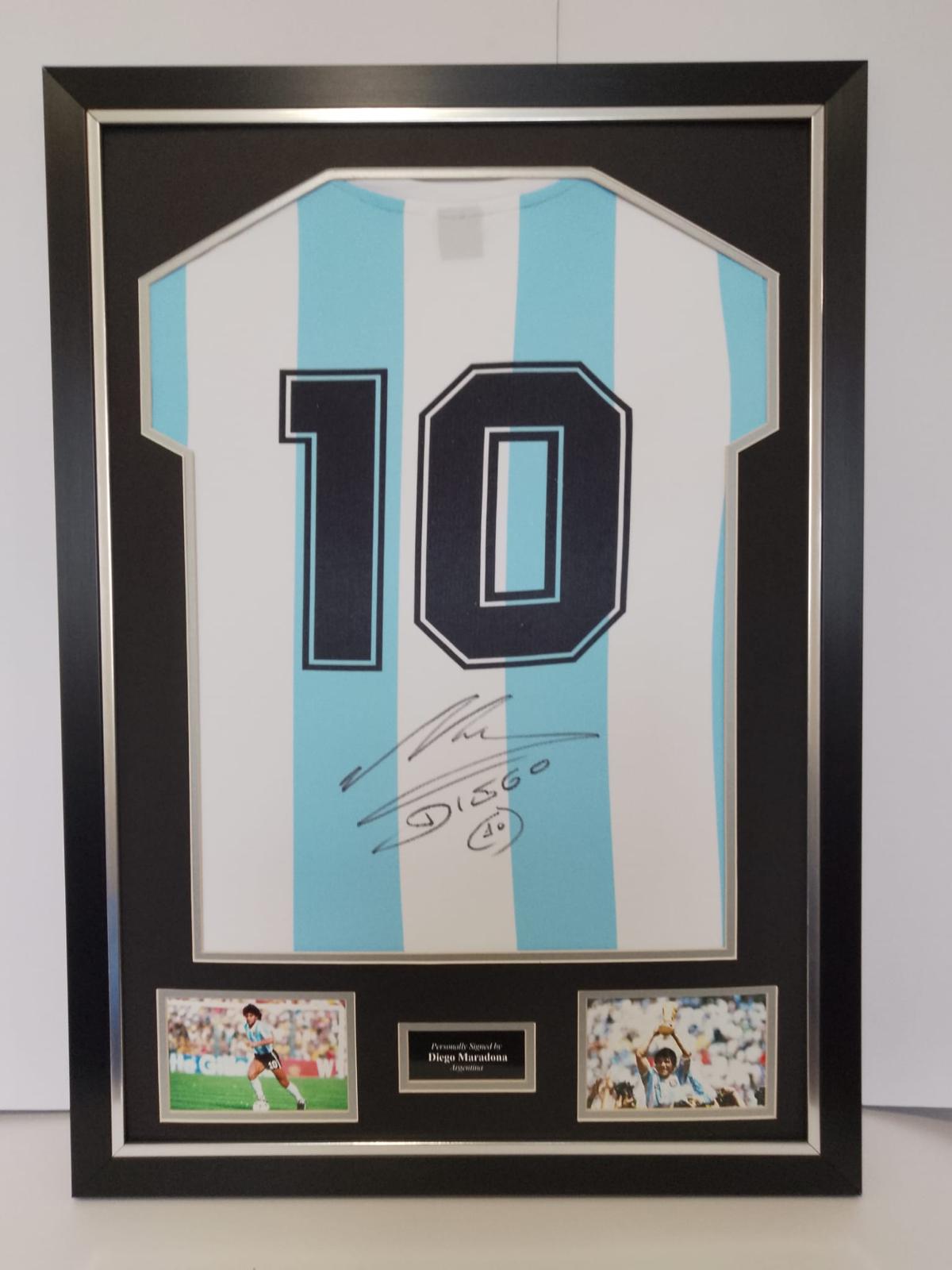 The Highlight this year has to be the Maradona signed number 10 Argentina shirt, but we also have a signed Pele Brazil jersey.